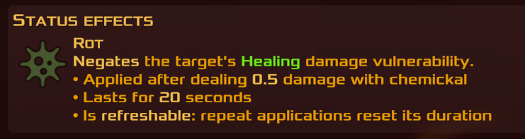 On the topic of alchemy, I added a new tier 2 chemickal: Rotting Bane. It applies the Rot status effect to organic enemies, negating their healing damage vulnerability. In practice, this means that characters get hurt from healing sources while under the effect. I can't wait to put this on an enemy, I'm sure it'll trip a lot of people up.